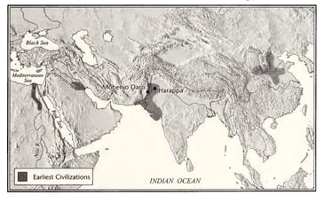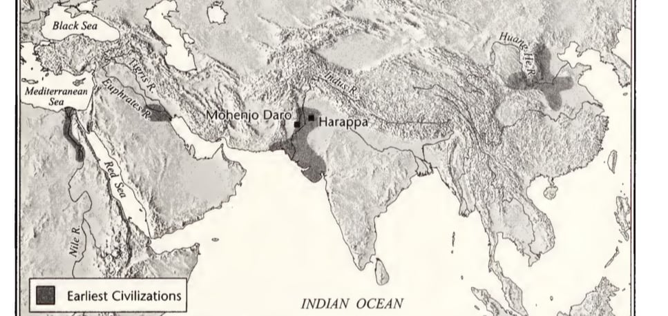 Peradaban Awal di Eurasia dan Mesir. (Sumber: John R. McNeill dan William H. McNeill, The Human Web: A Bird's-Eye View of World History, W.W. Norton & Company, 2003, hlm. 43)